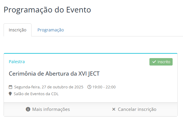 - Primeiro se inscreva no evento: XIV JECT